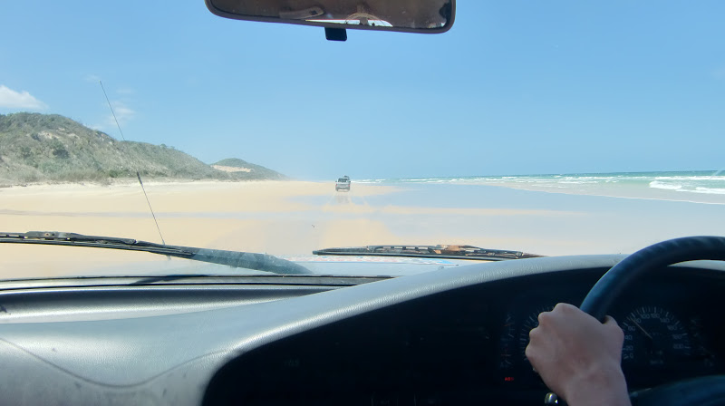Ist das nicht geil!!! Wieso auf Strassen fahren, wenn man auch am Beach rumballern kann!! Strassen gibts auf Fraser eh so gut wie gar keine! Sind immer nur im Sand und oder am Beach gefahren. Musik aufgedreht, Kopf ausm Fenster und einfach die Optik geniessen - Herrlich!!!
